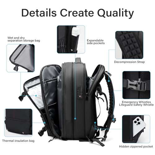 • 【Multifunctional Storage Compartments】The vacuum backpack have three spacious main compartments and multiple hidden pockets, including a dedicated dry/wet separation pocket to separate wet and dry items, isolating damp clothes and odors, and laptop compartment securely holds a 17-inch laptop with a layer of thickened cushion, a side bottle pocket, multi-function pockets, anti-theft pocket for passport, etc.