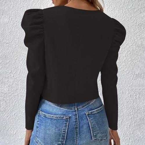 HGps8w Puff Sleeve Crop Jackets for Women Trendy Zip Up Long Sleeve Business Casual Outerwear Blazers 3