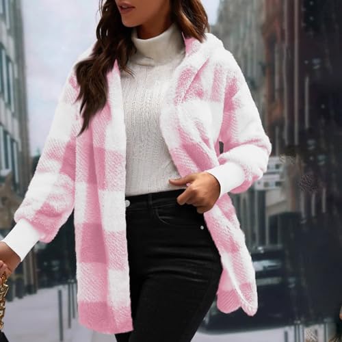 Womens Winter Coats Fuzzy Cute Warm Winter Comfy Plush Women's Coats Hooded Windbreaker Fleece Open Front Oversized Cardigan 6
