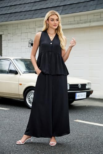 trending ! Pant Suits for Women Dressy 2 Piece Sets Summer Business Casual Outfits Sleeveless Vest and Wide Leg Pants