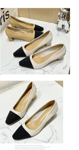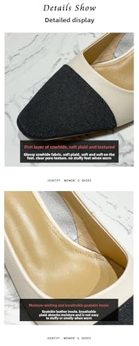 French Style Women’s Low Block Heel Pumps – Breathable snug Pointed Toe Leather Slip-On High Heels for Office & Party