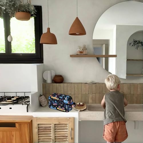 Kids Hanging Toiletry Bags Size: 7.8*4.9*2.7 inches. Got this for your kids for traveling. It has lots of pockets so is great for their toys. You can put lots of different things in it.The Travel Toiletry Bag for Kids is easy to carry and ideal for 3-10 year old. It can let kids have their own toiletries and feeling grown up. It’s adorable, zipper works well, nice storage options inside.Adequate space is perfect for little boys and girls to travel, stay overnight, on weekends, and for short camping tripsPerfect present for your boys or girls, birthday, Christmas, summer camp.Grandparents can choose this cute toiletry bag for your grandchildren. We have prints on elements such as sharks, dinosaurs, hot air balloons, and cars. Perfect for everyday use. first-class materials and excellent craftsmanship ensure long-lasting durability.