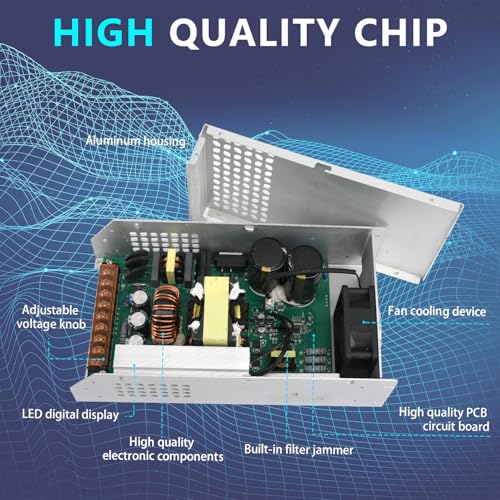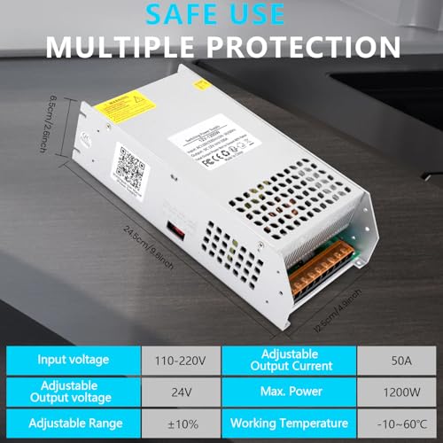 • Smart Efficient Cooling: 24V SMPS frosted aluminum shell with skeletonized holes makes dissipation more efficient, built-in Cooling fan and dustproof net, effectively prevent dust from entering, prevent the circuit board from burning and ensure stable work. Built-in status indicator can clearly see the operating status of the 1200w power supply.