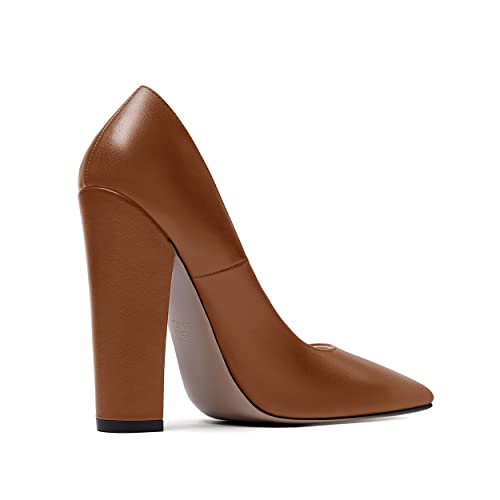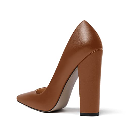 WAYDERNS Women's Matte Party Pointed Toe Slip On Fashion Block High Heel Pumps Shoes 4.7 Inch 4