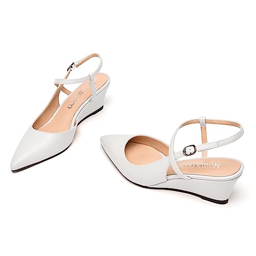 trending ! MODENCOCO Womens Pointed Toe Buckle Party Matte Fashion cozy Ankle Strap Wedge Low Heel Pumps Dress Shoes 2 Inch