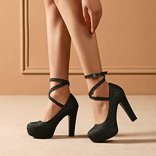 - Hidden Platform block high heel sequin glitter cross strap pumps are fashionable, iconic, and timeless. They are one-of-a-kind shoes in your closet.