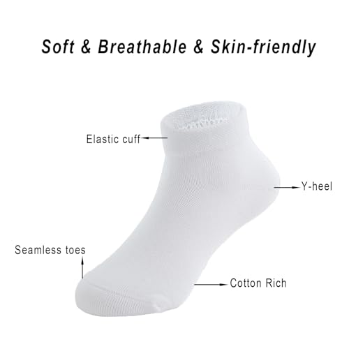 EPEIUS Kids' Low Cut Ankle Socks Cotton Seamless Toe Sport Athletic Socks for Boys Girls White Black Navy 4/8 Pack