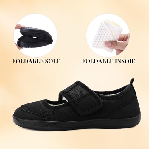 Rihero Womens Slippers Wide Width Diabetic Shoes Edema House Barefoot Walking Shoes Adjustable Indoor Outdoor Slippers