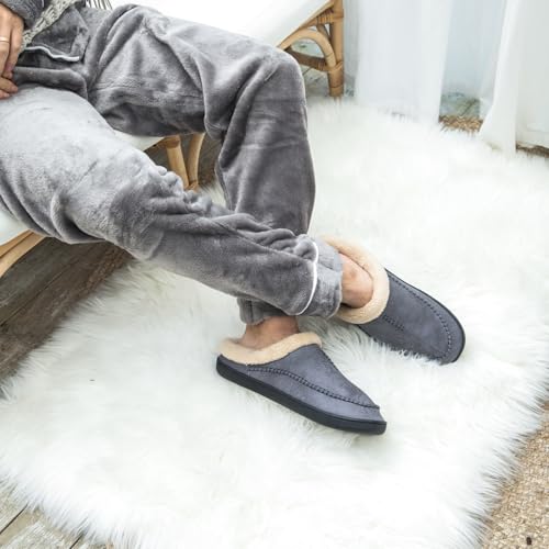Sole material: Memory FoamOuter material: Natural RubberCLASSIC MOCCASIN STYLE: Comfortable Classic Moccasin Slippers. Thick Plush Lining Can Wrapped Your Foot in Comfy Warmth on Chilly Days, also add a Luxurious Look and Feel, Can Wrap Your Foot to Keep Warm on Chilly Day. Refesh You After a Tiring Day.FLEXIBLE SOFT BOTTOM: The Durable, Non-slip, Rubber Sole Prevents Sliding Indoor and Outdoor, Soft Special and Clear Texture Bottom Design Can Help Grip The Floor to Keep You Safe on Wet Tiles and It Will Not Scratch the Floor.ULTIMATE COZY MEMORY FOAM: Quality Menβs Slippers With Good and Thick Memory Foam Which Springs Back to Shape as Opposed to Getting a Bit Thinner Every Time You Wear Them. Memory Foam Cushioning Footbed to the Shape of Your Feet Seems to Hug Your Feet, Providing Luxurious Comfort.These trendy Slippers are Available in Colors Black, Grey, Coffee and Brown. They are also Easy Care - These House Slippers are Machine Washable for Lasting Freshness - Drop Them in The Wash, Gentle Cycle, Cold, and Lay Flat to Dry.GREAT HOLIDAY GIFT: Ideal Gifts Slippers Mocassins for Men on any Holiday, Thanksgiving, Halloween, Christmas, Valentine's Day, Birthday. You Can Gift it to Your Husband, Grandfather, Friend, Dad, Boyfriends and Many More. Perfect for everyday use. premium materials and excellent craftsmanship ensure long-lasting durability.