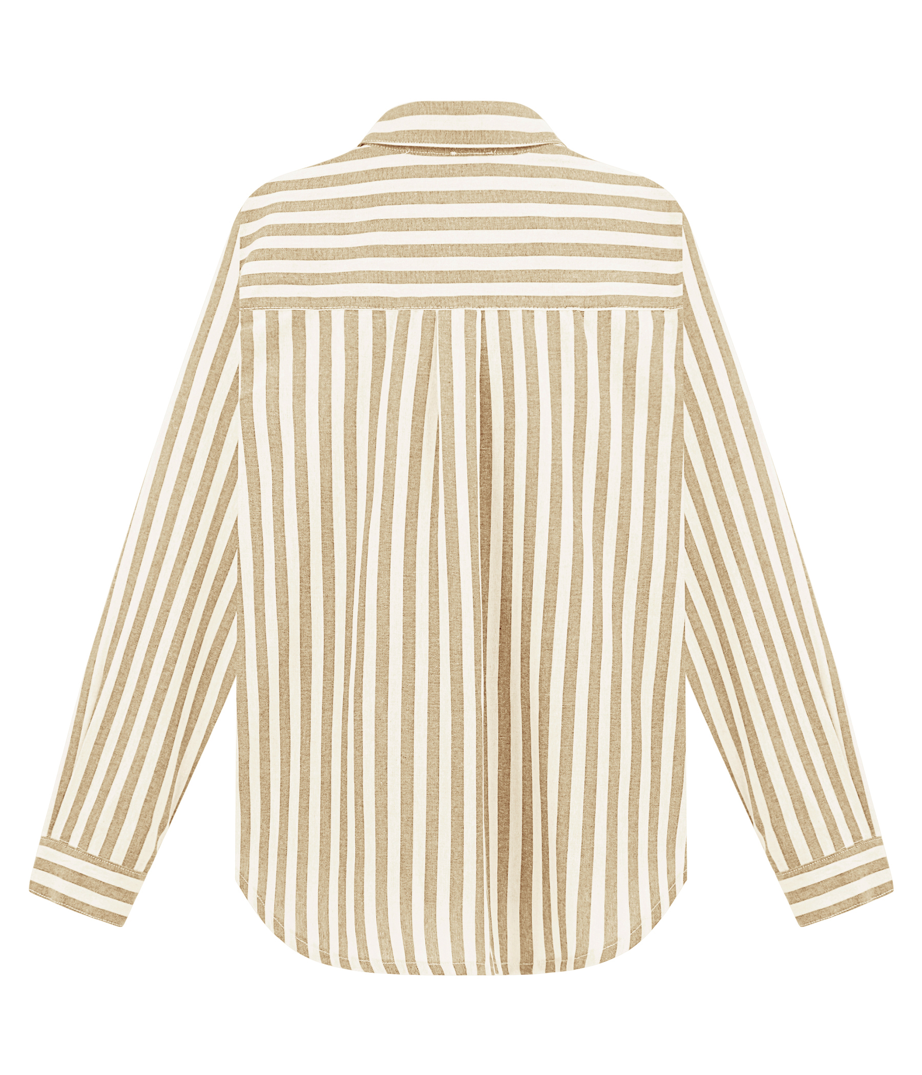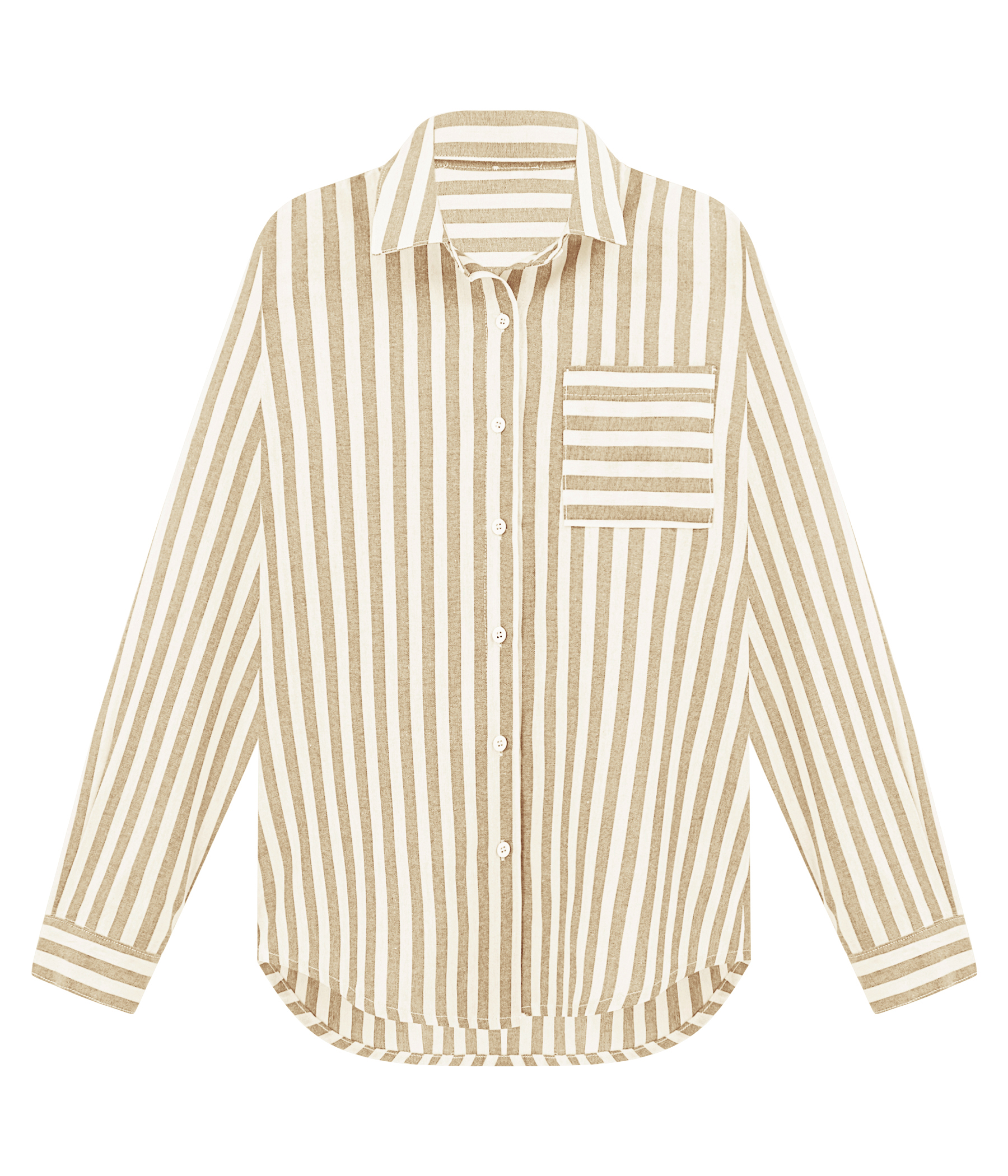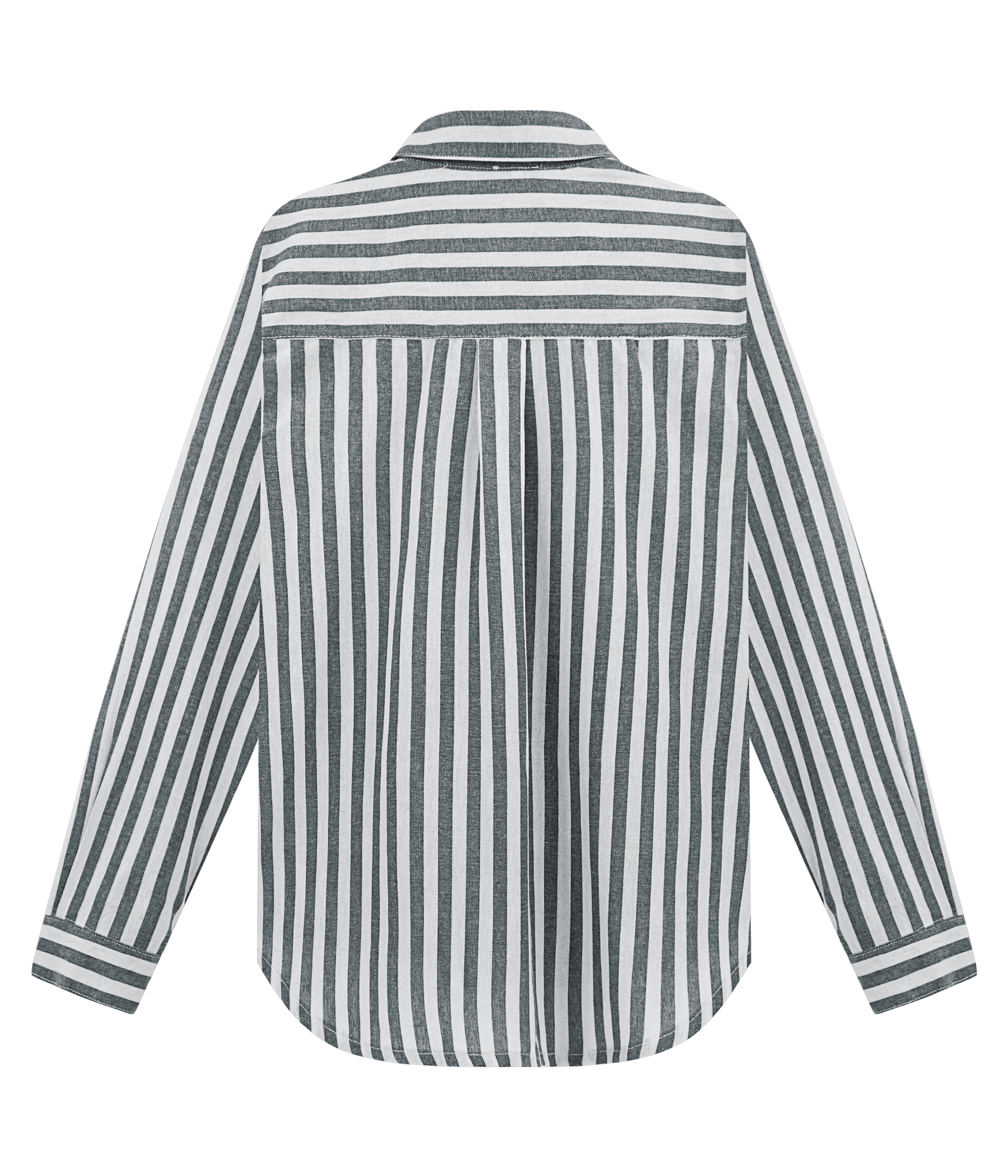 The striped shirt is a light and chic look. There are one pocket and two pockets two versions to choose from. Itself is a loose fit style which makes it extremely pleasant, suitable for anyone’s body type!