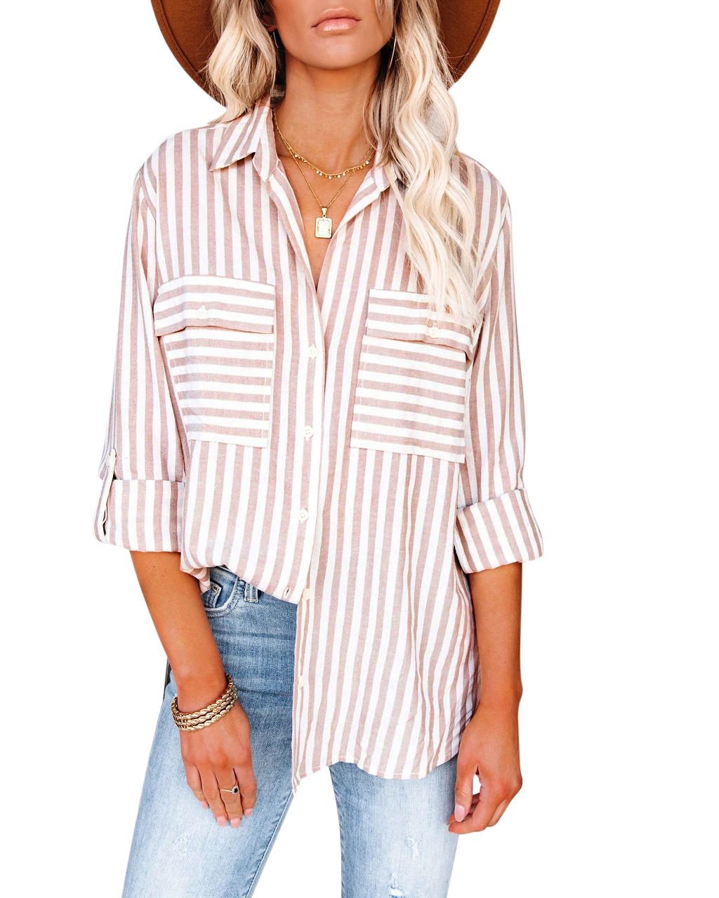 R.Vivimos Women's Long Sleeve Versatile Striped Casual Shirts