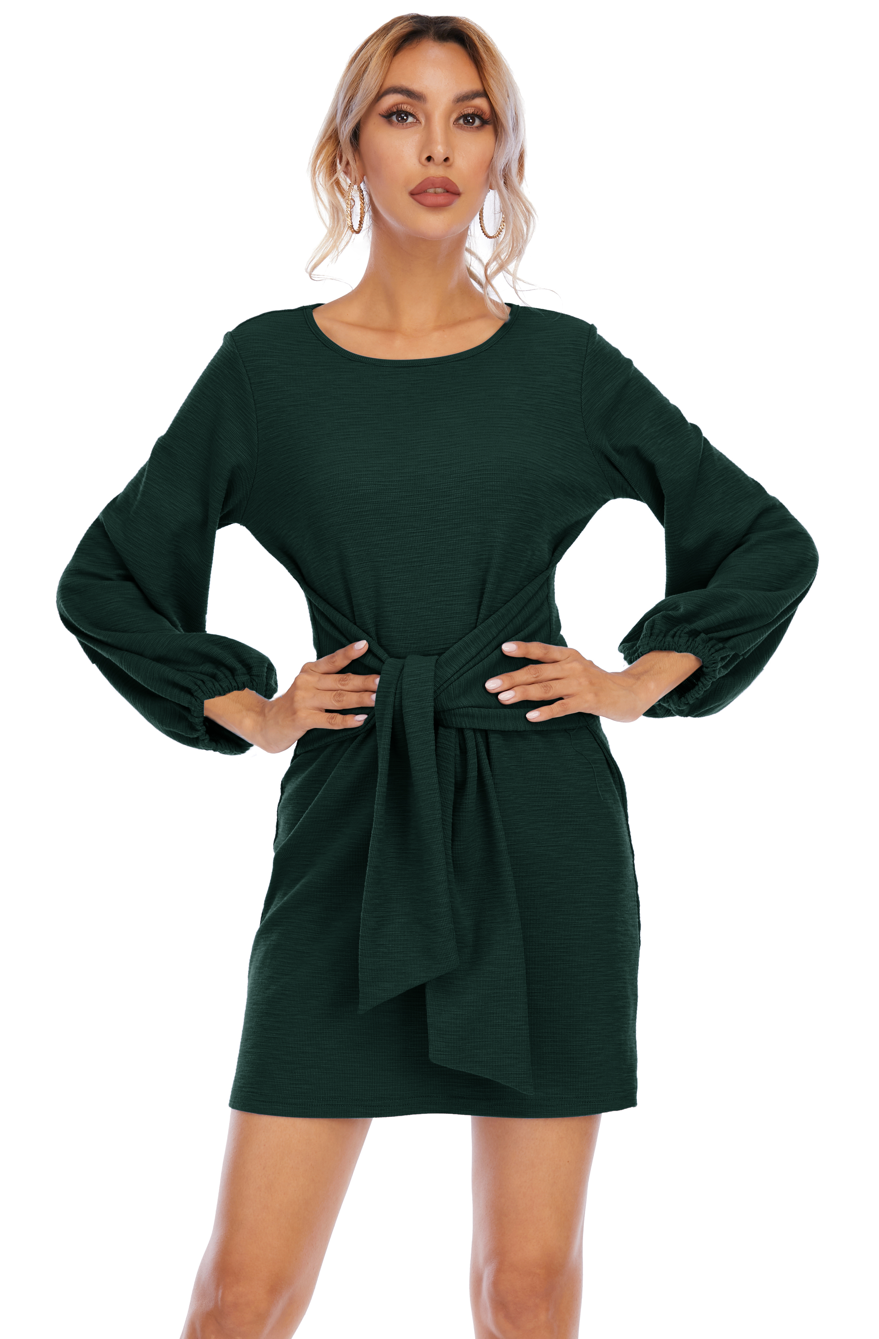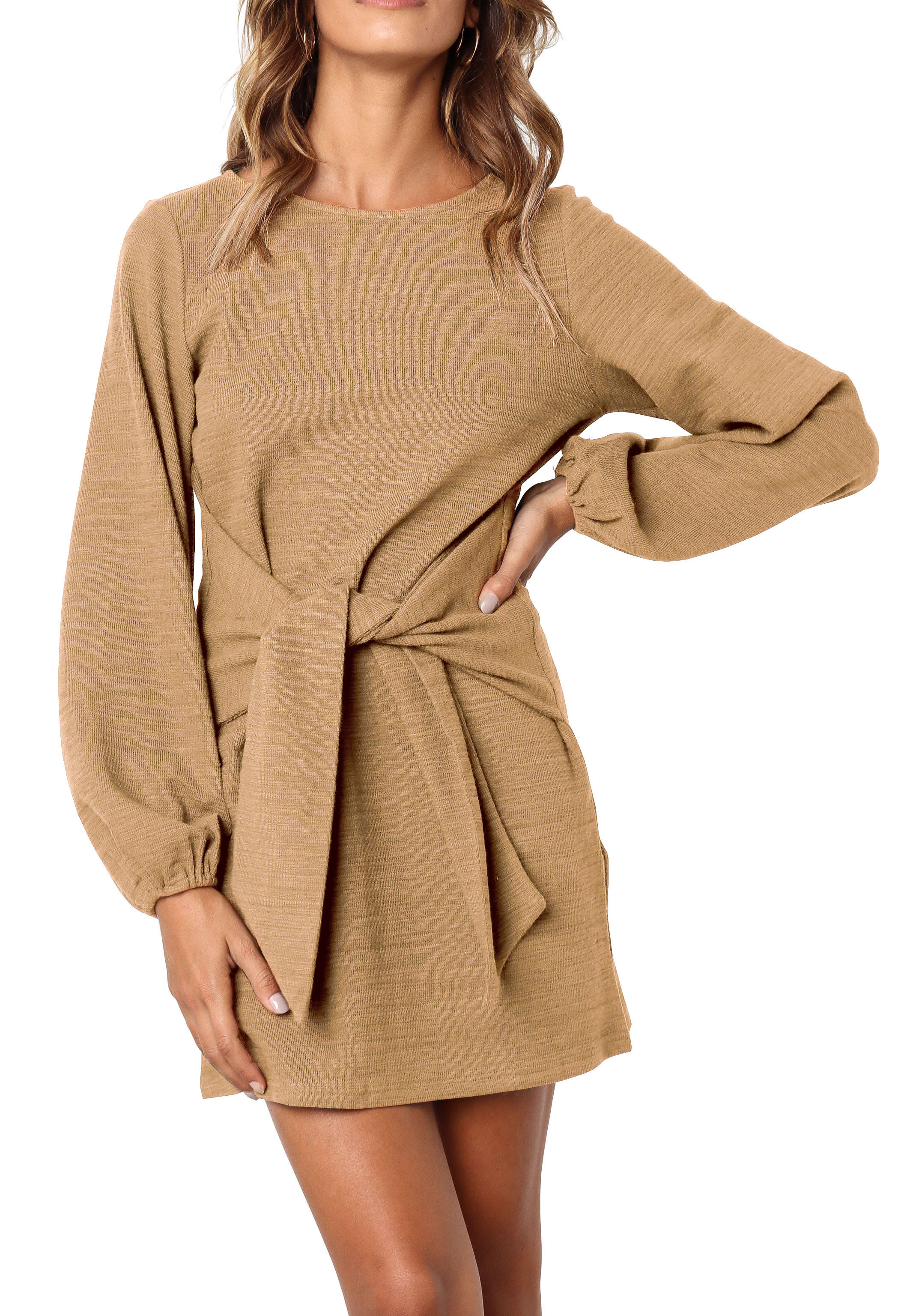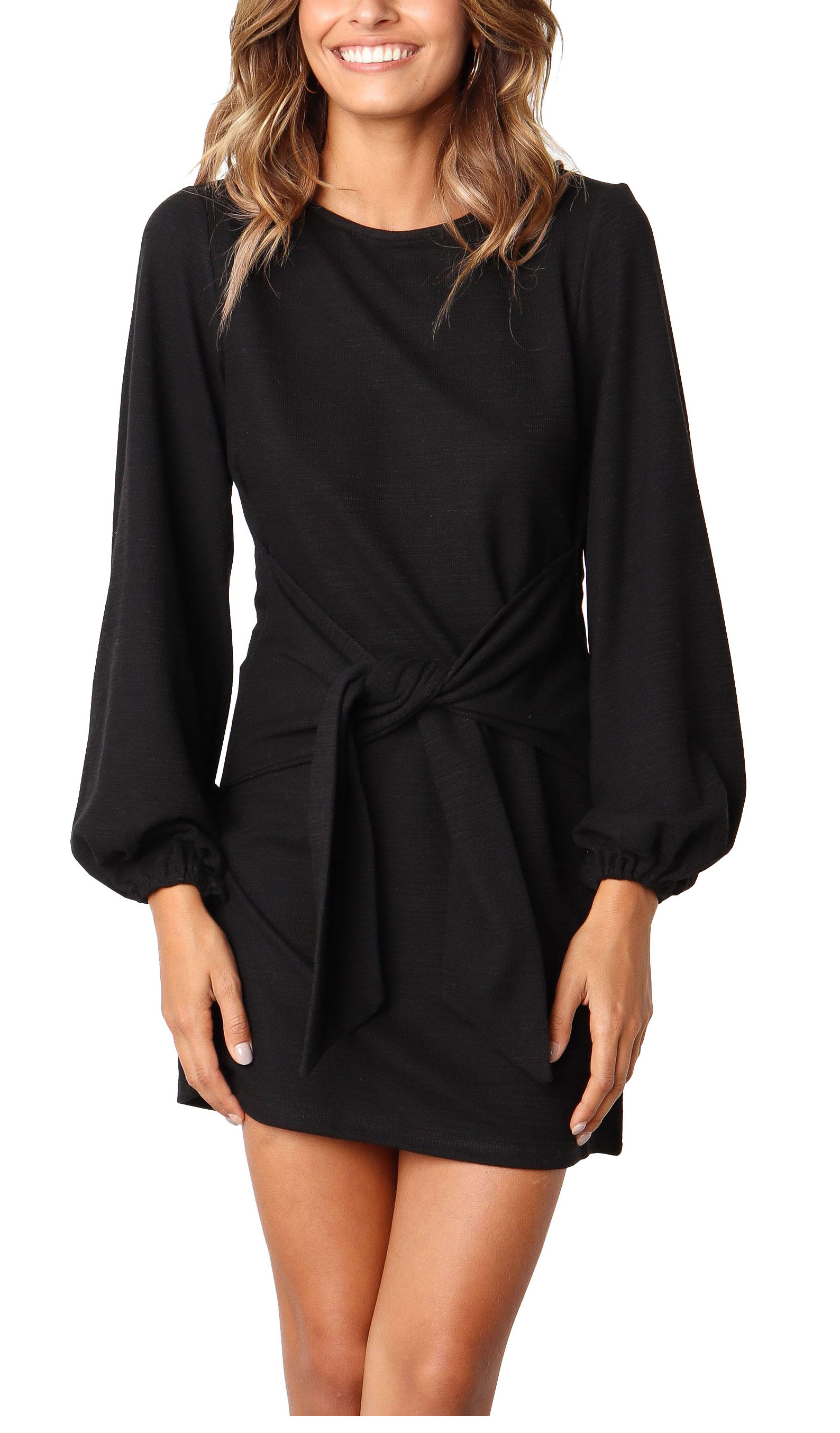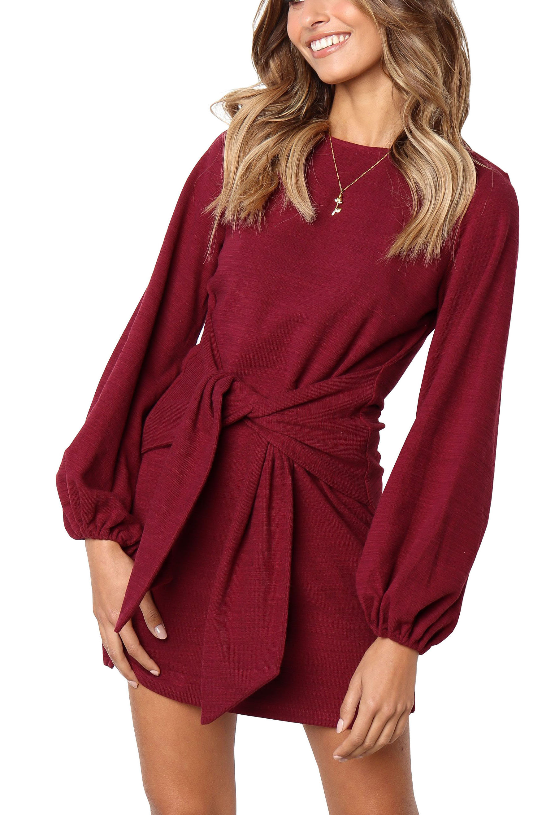 The elegant bodycon dress is simple in appearance, but still dressy enough. The tie waist detailing outlines your curves while the velvety and warm material keeps your soft all day!