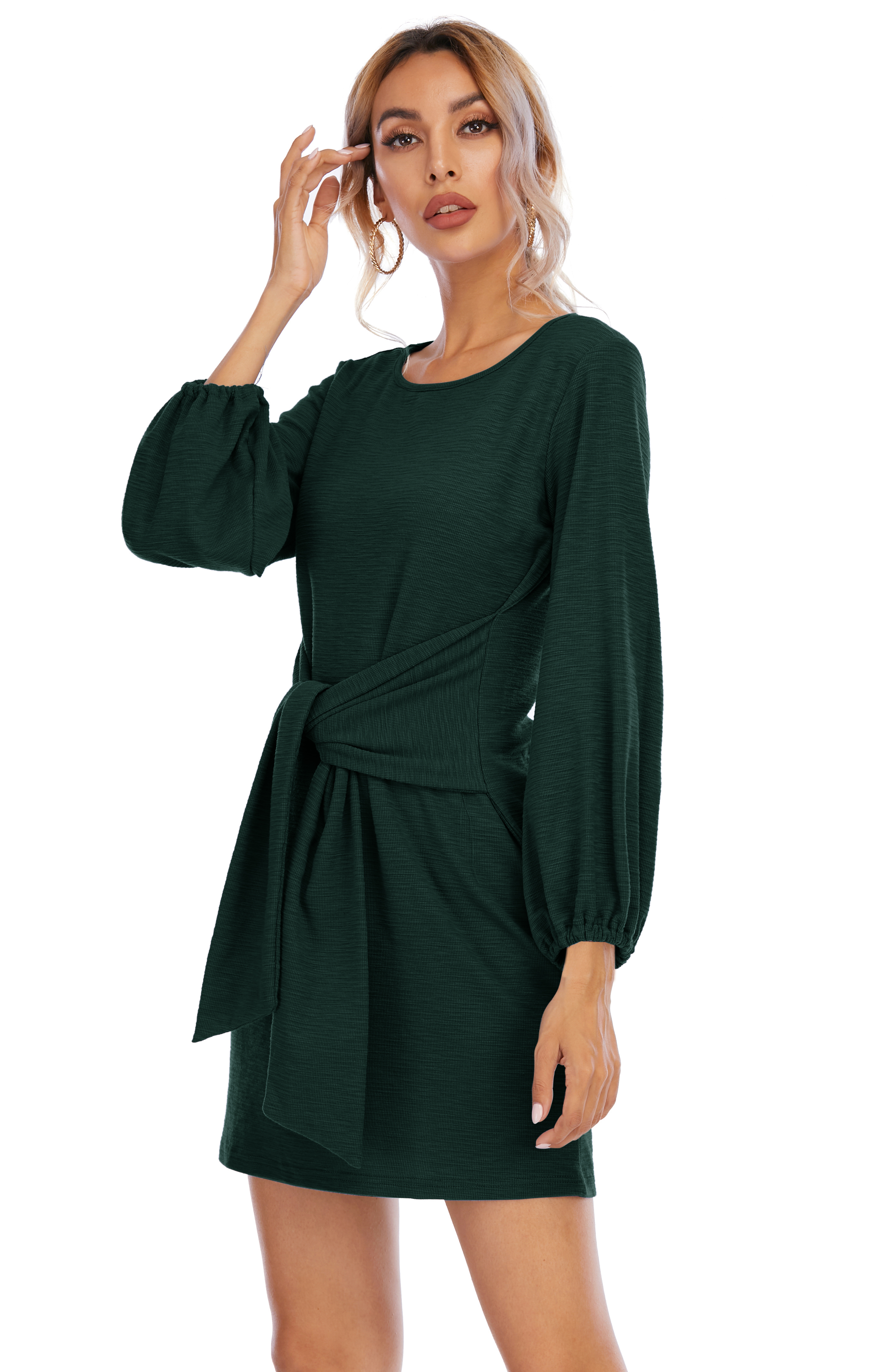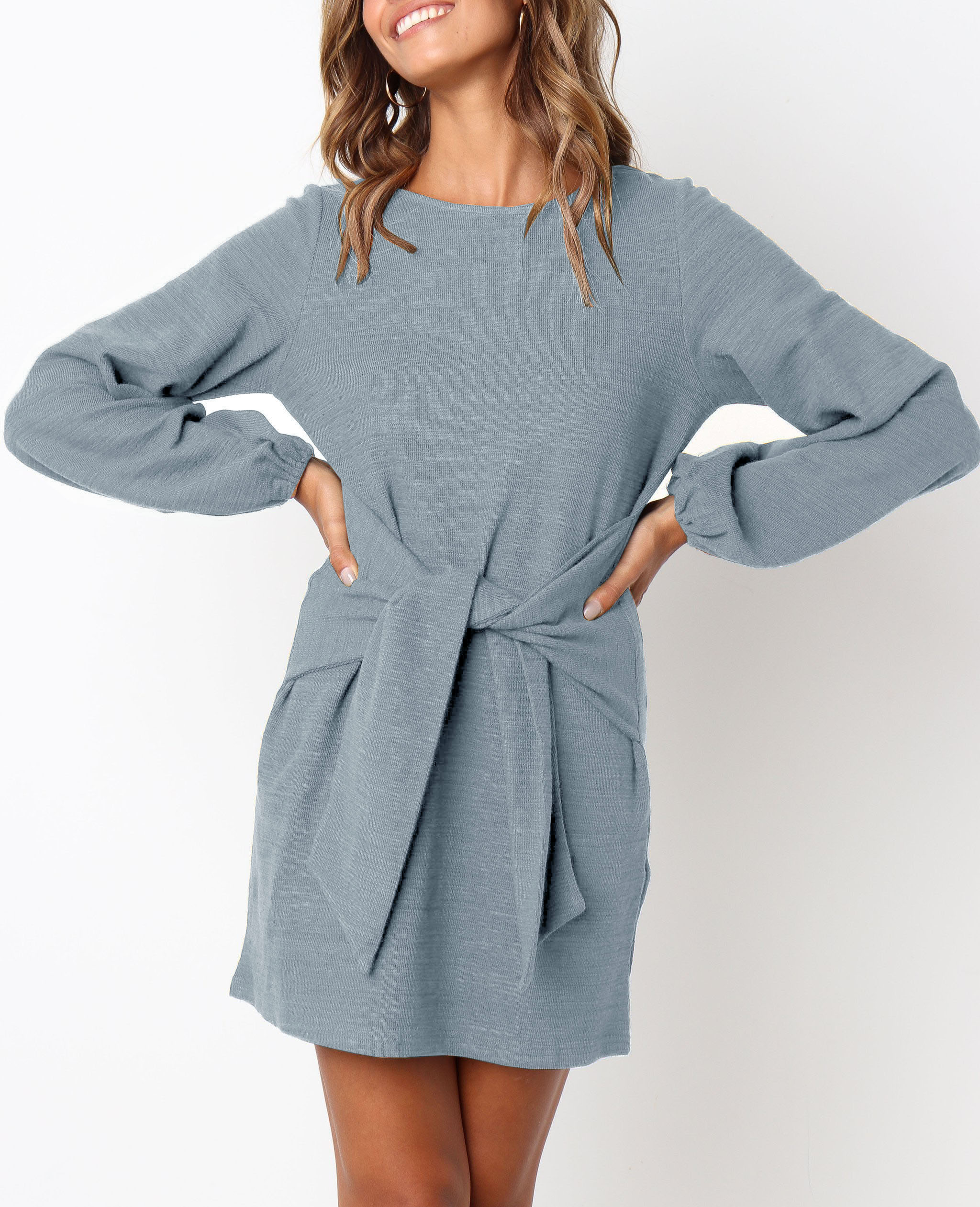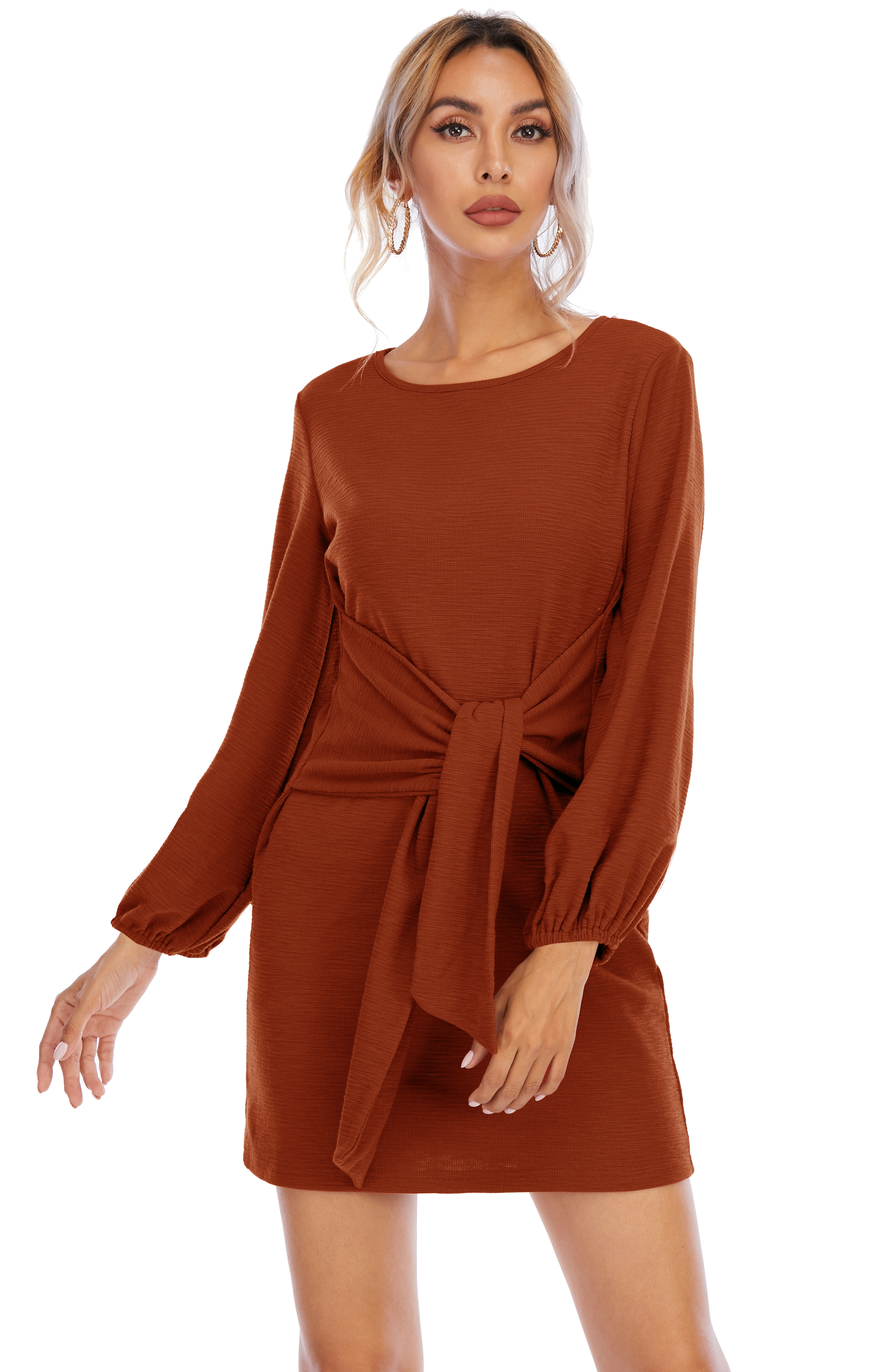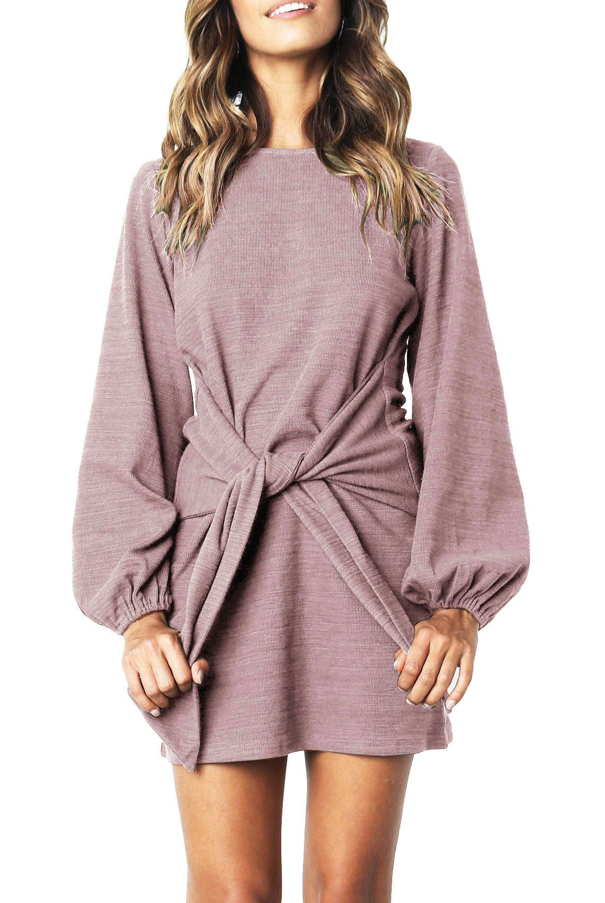 The elegant bodycon dress is simple in appearance, but still dressy enough. The tie waist detailing outlines your curves while the velvety and warm material keeps your soft all day!