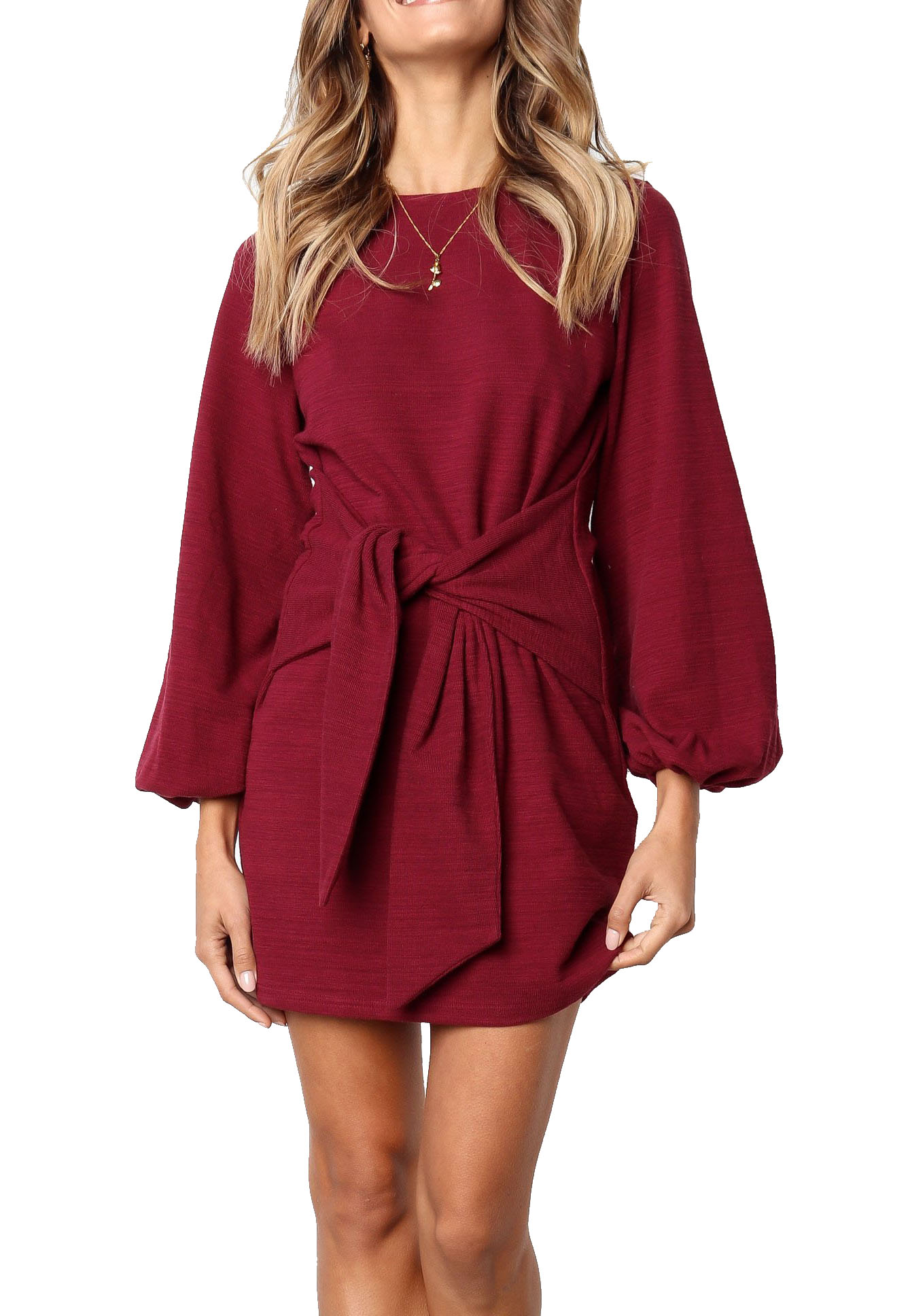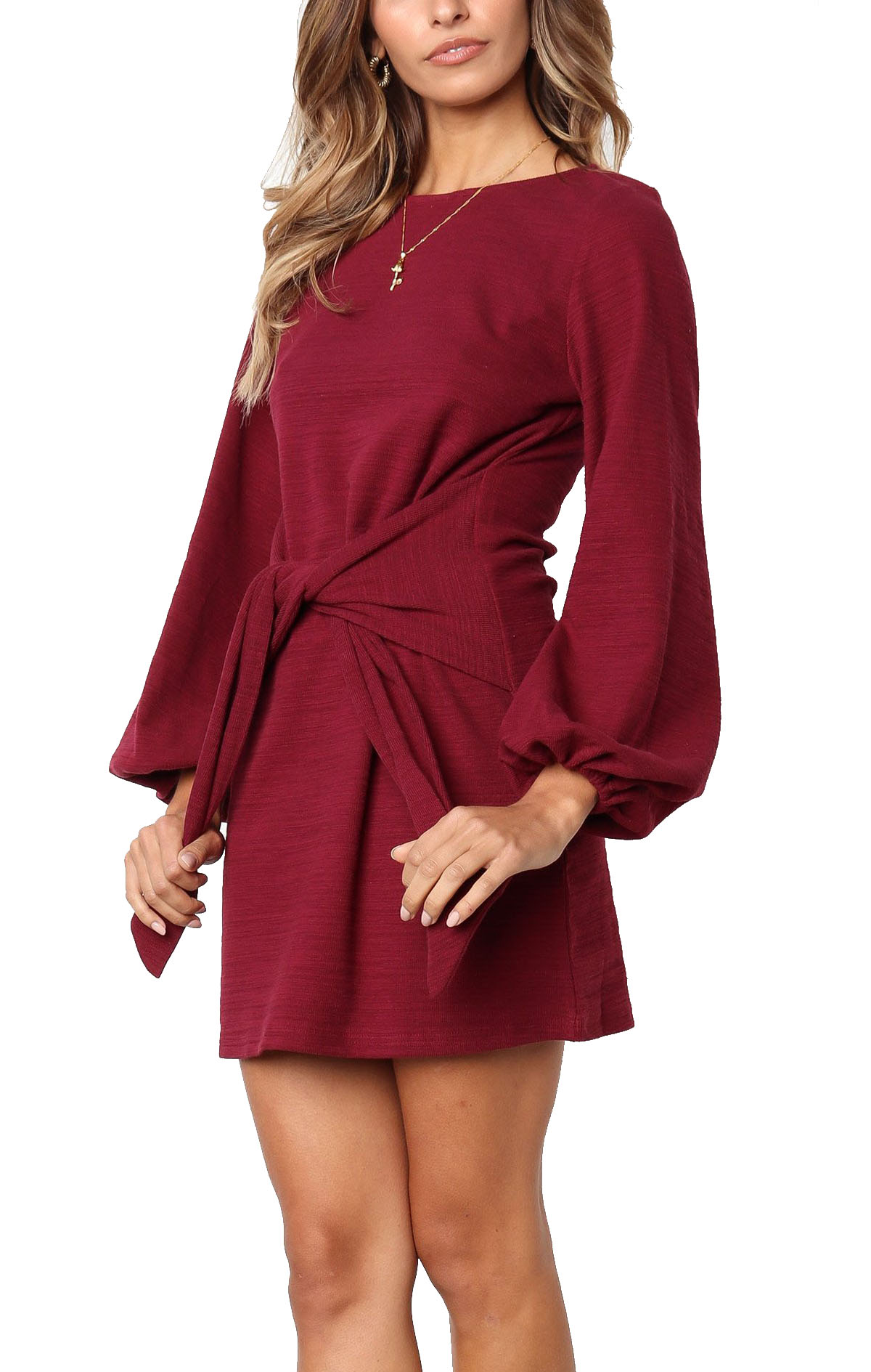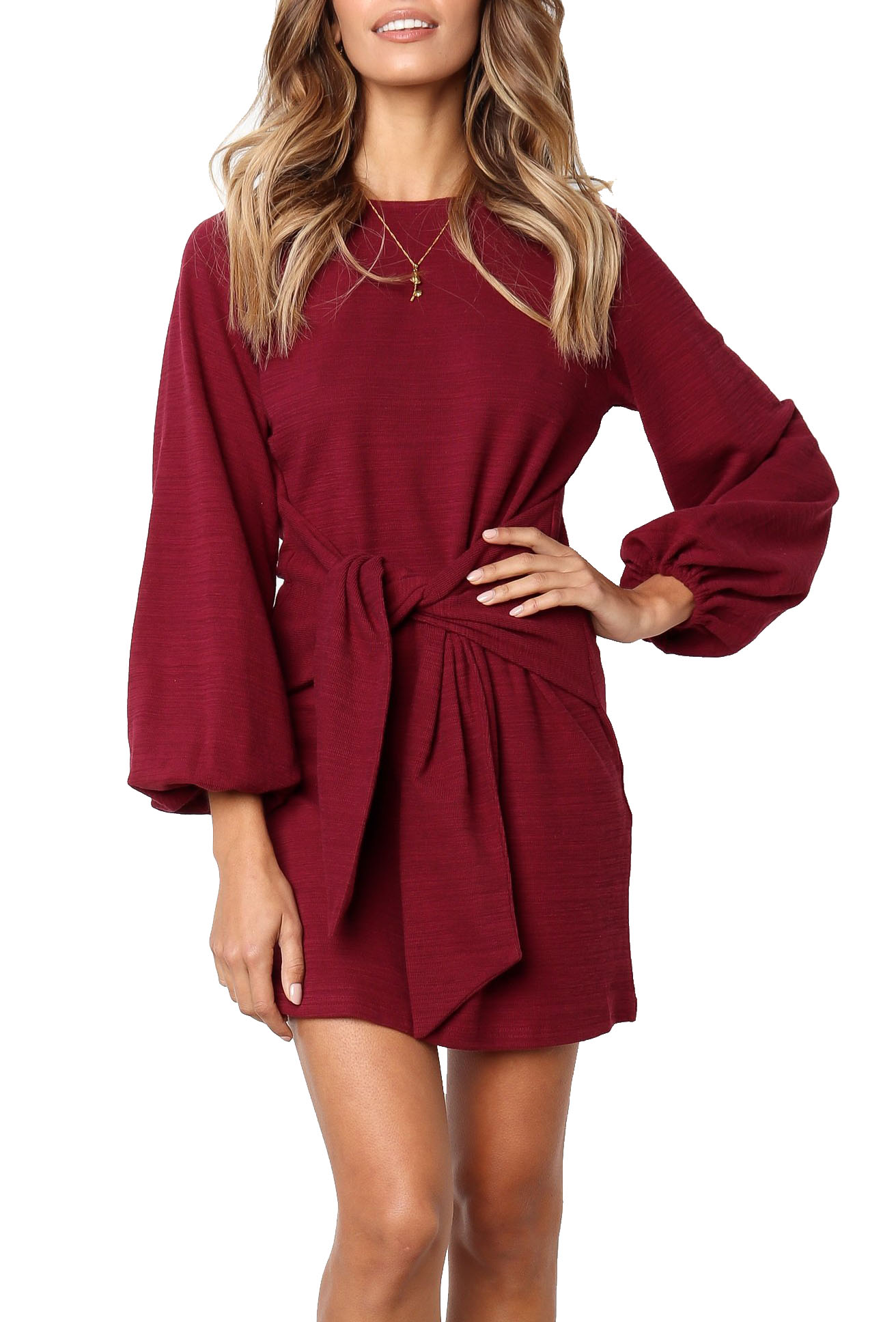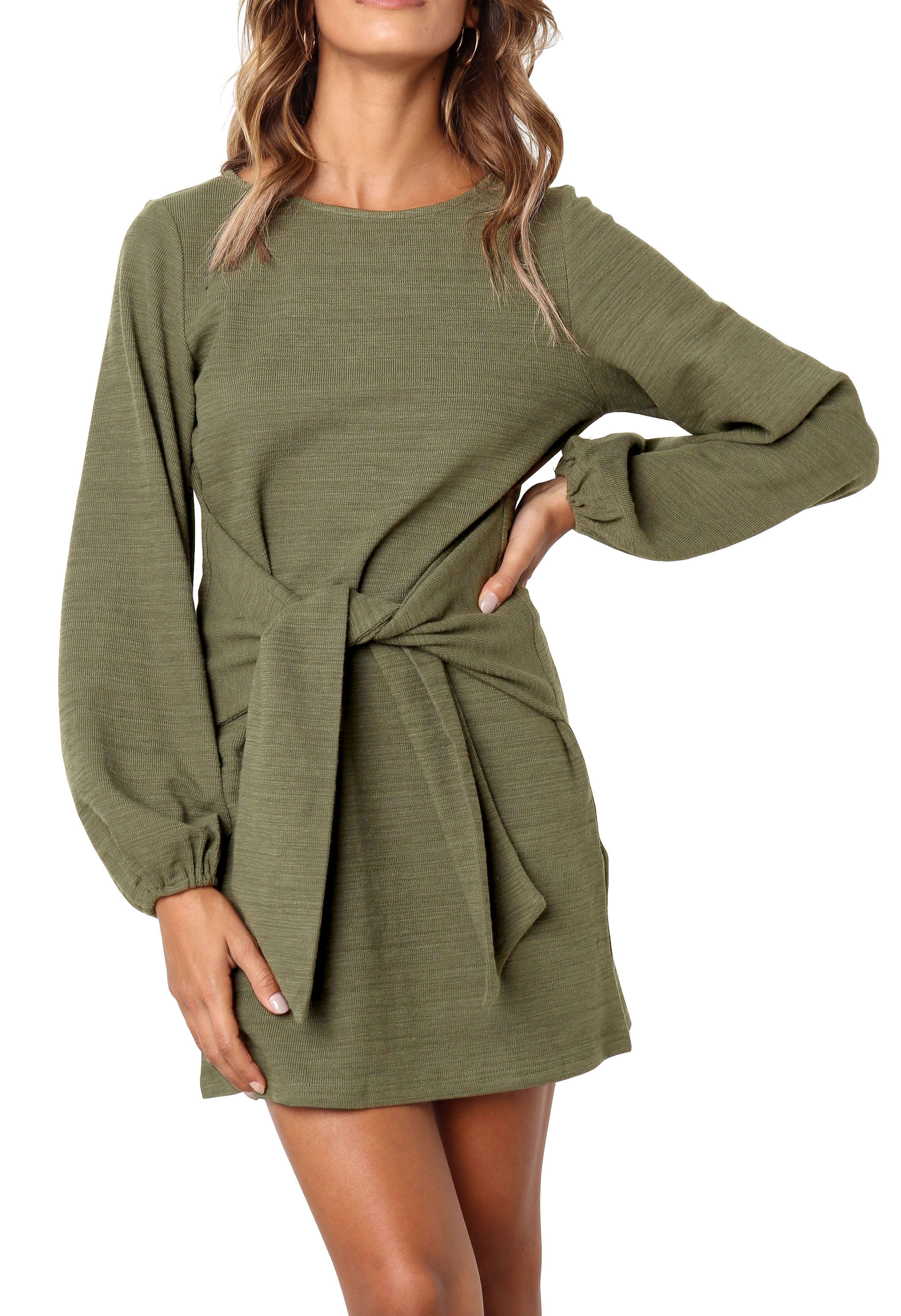 The elegant bodycon dress is simple in appearance, but still dressy enough. The tie waist detailing outlines your curves while the velvety and warm material keeps your soft all day!