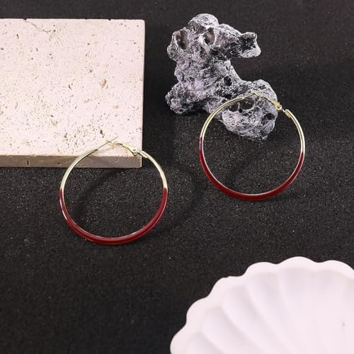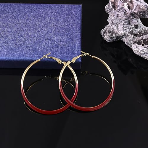 Gold Hoop Earrings for Women Gold and Colorful Hoop Earrings Red Black White Enamel Hoops Earring Big Round Circle Hoops Earring Jewelry for Women Accessories