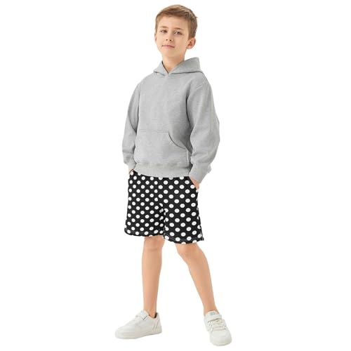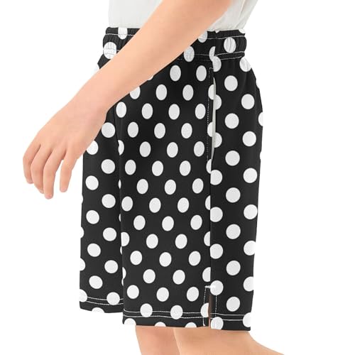 Polka Dot Pattern in Black and White Boy Casual Shorts Athletic Shorts Pants with Pockets 6