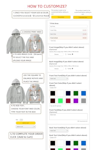 More information about Kids Boys Girls Custom Sweatshirt Add Your Own Text and Design Hoodie Cotton Personalized Pullover