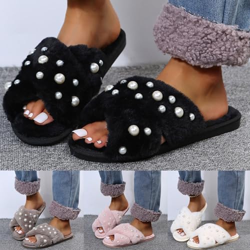 trending ! Open Toe Slippers for Women, Women's Fuzzy Slippers Cross Band Memory Foam House Shoes Cozy cozy Plush Fluffy Slipper Indoor and Outdoor