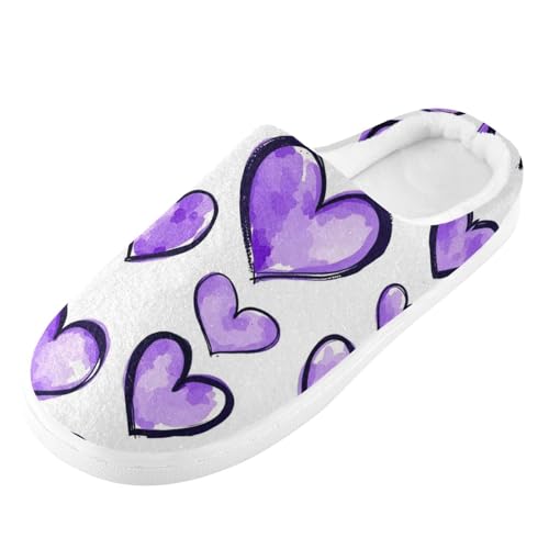 JUNZAN Purple Hearts Watercolor Cartoon Women Cotton Slippers snug Memory Foam Indoor Slippers for Spa Birthday Presents 6-7