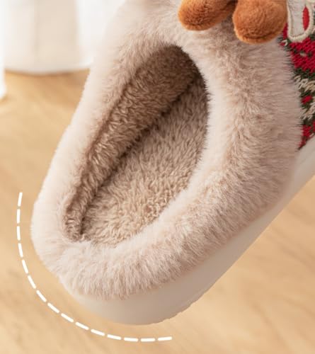 Elk Christmas Slippers Women Fuzzy Memory Foam Slip-on Bedroom Slipper Cute Fluffy Winter Indoor House Shoes Slippers 2025 6