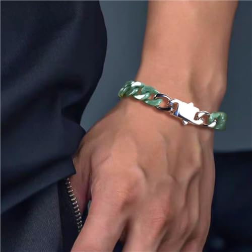 • Trendsetting Unisex Design: This jadeite bracelet boldly blends hip-hop elements with timeless elegance, finished with a sturdy polished metal clasp for a striking look. It's an ideal choice for men and women who appreciate contemporary jewelry