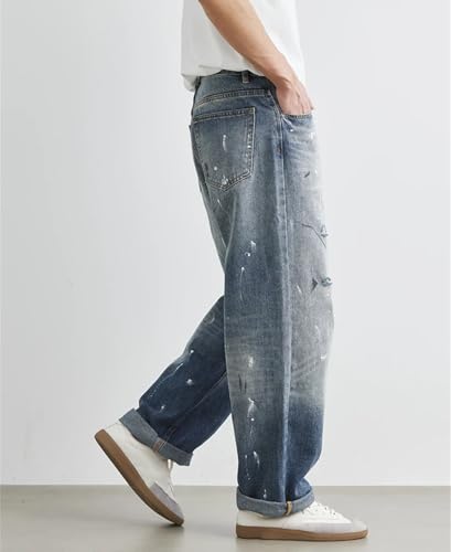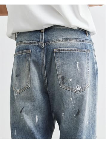 Men’S Washed Jeans Loose Fit Straight Leg Trousers Retro Casual Pants with Denim Look