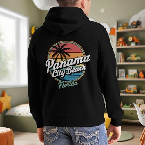 trending ! Kids Retro Panama City Beach Florida Boys Girls Lightweight Kangaroo Pocket Fleece Hoodies