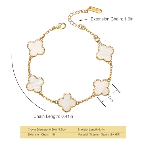 18K Gold Plated Clover Bracelet for Women, Four Leaf Clover Lucky Charm Bracelet, Dainty Jewelry Gifts for Women 5
