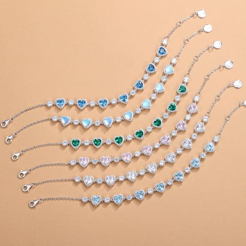 FANCIME Ms Charming Sterling Silver Birthstone Tennis Bracelet for Women Halo Heart Design Gemstone Jewelry Anniversary Birthday Gifts for Her Mom Wife 6