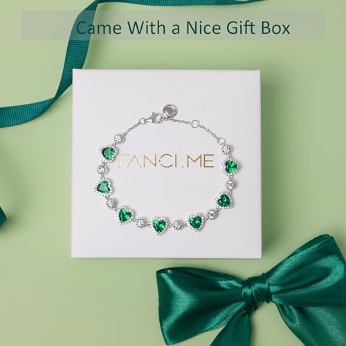 trending ! FANCIME Ms Charming Sterling Silver Birthstone Tennis Bracelet for Women Halo Heart Design Gemstone Jewelry Anniversary Birthday Gifts for Her Mom Wife