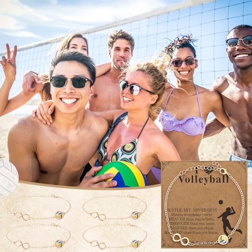 Material: 14K gold platingMetal type: ZincGem type: No gemstoneElegant Infinity Design: These volleyball bracelet Features a fashionable infinity symbol paired with a volleyball-shaped charm, perfect for showcasing your endless love for volleyball and sportsmanship. A fashionable accessory that blends passion with eleganceInspirational phrases: The volleyball bracelets come with 12 volleyball cards, each inscribed with motivational phrases that remind the wearer to firmly walk their own path; The meaningful messages reflect strength, hope, and resilience, encouraging positivity, passion, and loveAdjustable Fit for Comfort: These infinity symbol bracelets feature an adjustable chain to fit most wrist sizes comfortably, designed to suit teenagers, athletes, and adult women alikeQuality Material: These sport jewelry bracelets for women are meticulously crafted from hypoallergenic 14K gold plating, free of nickel and lead, ensuring comfortable all-day wear for sensitive skinVolleyball Gift: The volleyball bracelet is an ideal meaningful gift for yourself, mother, daughter, family, sports enthusiasts, volleyball fans, volleyball team players and coaches; A great gift for anniversaries, birthdays, Valentine's Day, Thanksgiving, Christmas and sporting events Perfect for everyday use. first-class materials and excellent craftsmanship ensure long-lasting durability.