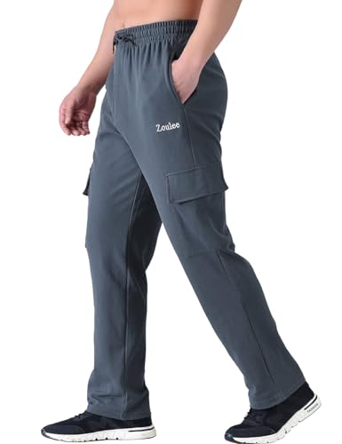 trending ! Zoulee Men's Cargo Pants Open Bottom Loose Fit Sweatpants, Straight Leg Gym Casual Pants with Pockets, Front Zipper Fly