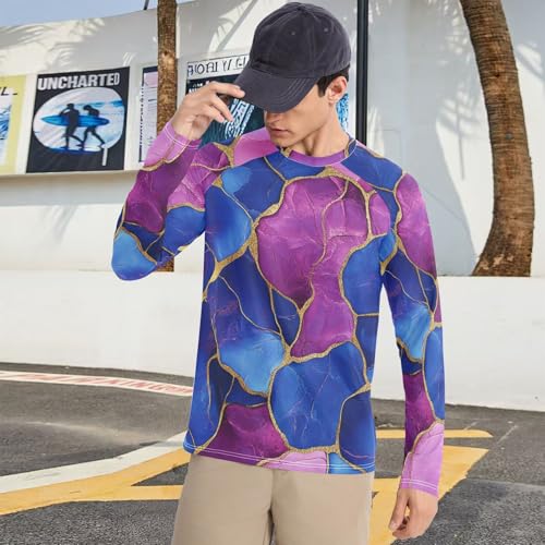 Marble Royal Blue trending Pink Men's Rash Guard Slim fit Long Sleeve Sun Shirt for Men Long Sleeve Running