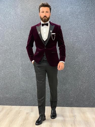 trending ! Tuxedo for Men 3 Piece One Button Blazer Double Breasted Vest Men Slim Fit Wedding Velvet Suit for Men Wedding with Tie