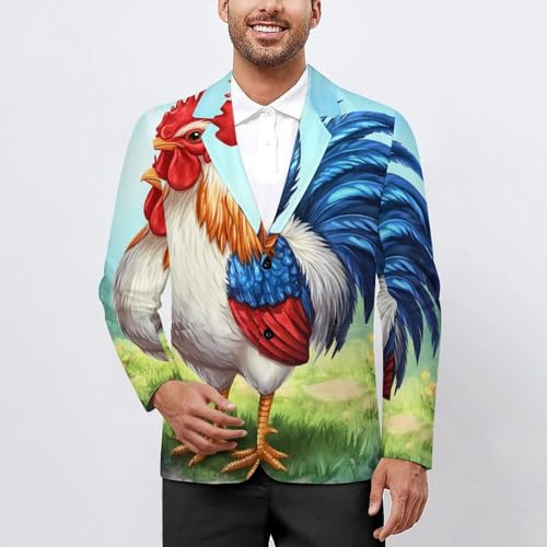 More information about Watercolor Rooster Mens Suit Jacket Lapel Blazers V Neck Button Business Coat Tuxedo for Wedding Party