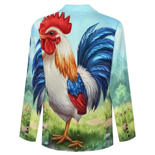 Watercolor Rooster Mens Suit Jacket Lapel Blazers V Neck Button Business Coat Tuxedo for Wedding Party 3