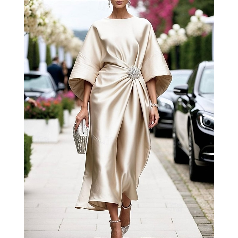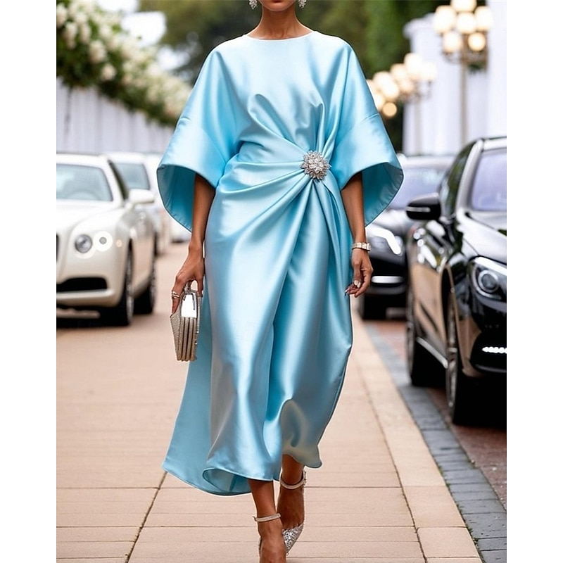 Why Choose Women's Midi Dress Satin Dress Semi Formal Dress Elegant Fashion contemporary Daily Date Weekend Regular Fit Plain Half Sleeve Crew Neck Pink Wine Navy Blue Green Spring Fall?