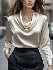 This Women's Elegant Dressy Satin Blouse Plain Elegant fashionable Work Long Sleeve Cowl Neck Regular Tops Black White Apricot Fall combines elegant design with practical functionality. Every detail has been carefully considered to ensure you get the best possible experience. The excellent construction means this product will serve you well for years to come.