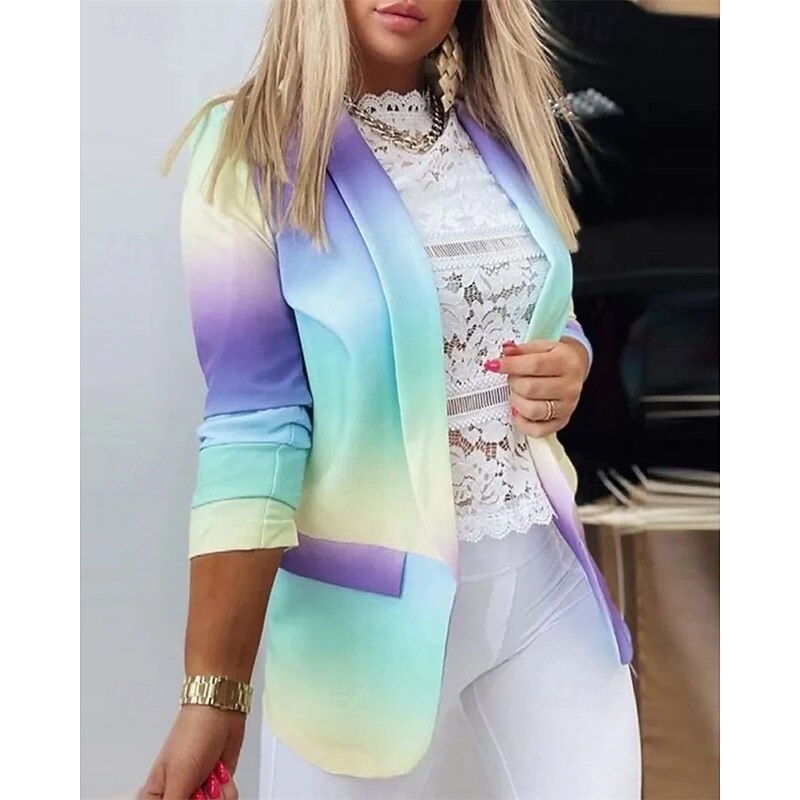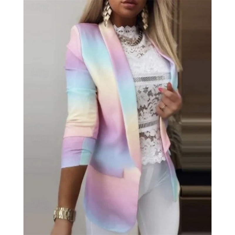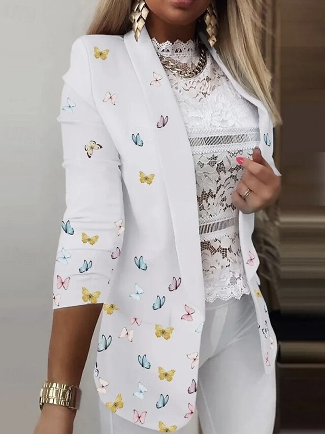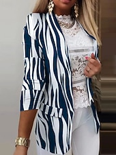More information about Women's Blazer cushy Print Elegant Fashion Outdoor Geometric Going out Casual Daily Weekend Cardigan Regular Lapel Regular Fit Long Sleeve Outerwear White Pink Navy Blue Spring Fall