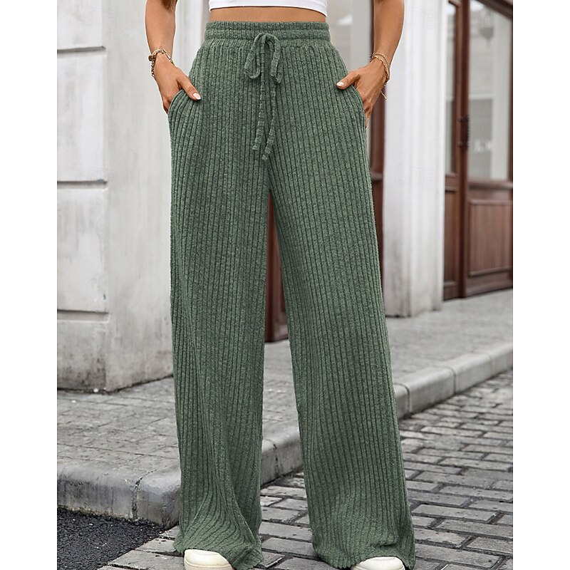 Why Choose Women's Wide Leg Corduroy Pants Slacks Streetwear Casual Full Length Natural Plain Elastic Drawstring Design velvety Street Holiday Weekend Black Army Green Fuchsia Light Blue Fall Regular Fit?