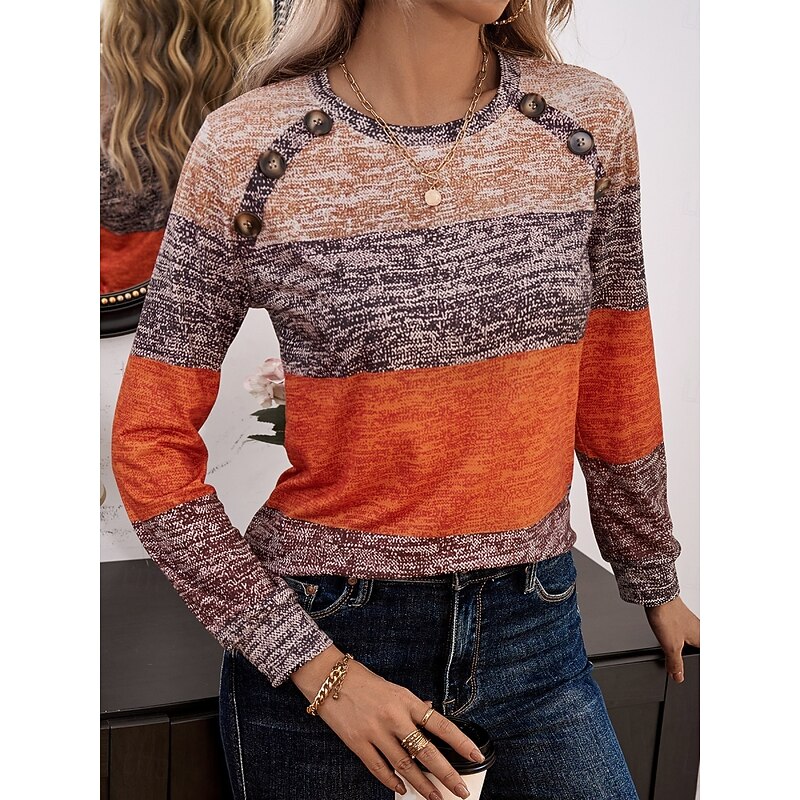 This Women's T Shirt Striped Fashion current Casual Long Sleeve Crew Neck Regular Tops Daily Weekend Patchwork Buttons Print Yellow Red Royal Blue Fall Winter combines elegant design with practical functionality. Every detail has been carefully considered to ensure you get the best possible experience. The excellent construction means this product will serve you well for years to come.