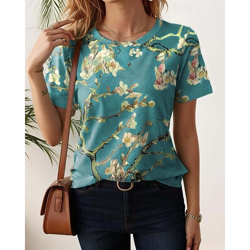 More information about Women's T Shirt Floral Color Block chic Casual Short Sleeve Crew Neck Regular Tops Daily Print White Pink Blue Green Rainbow Summer