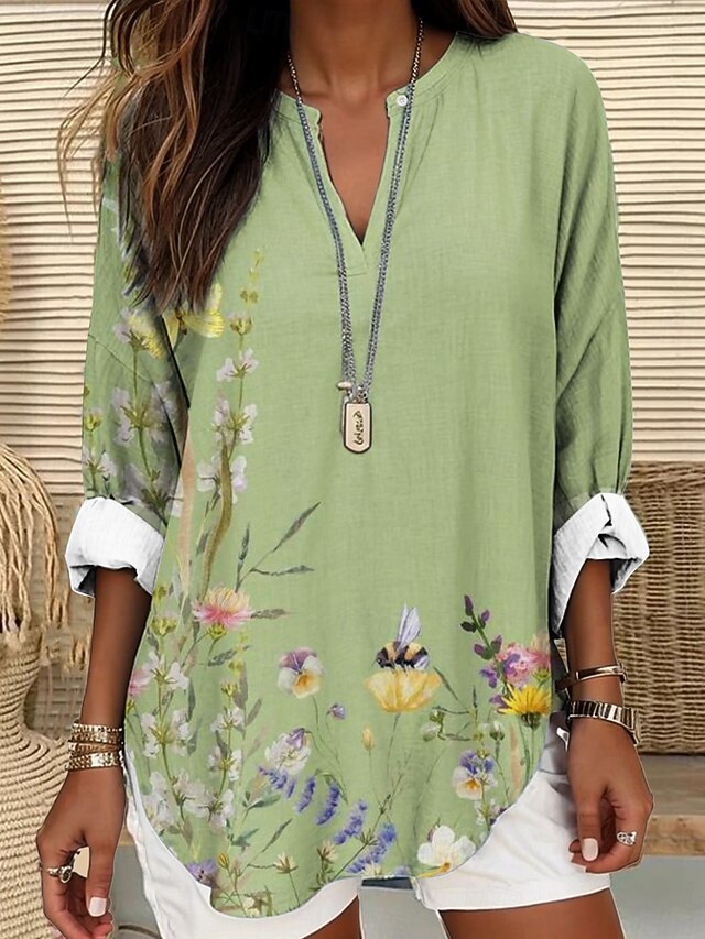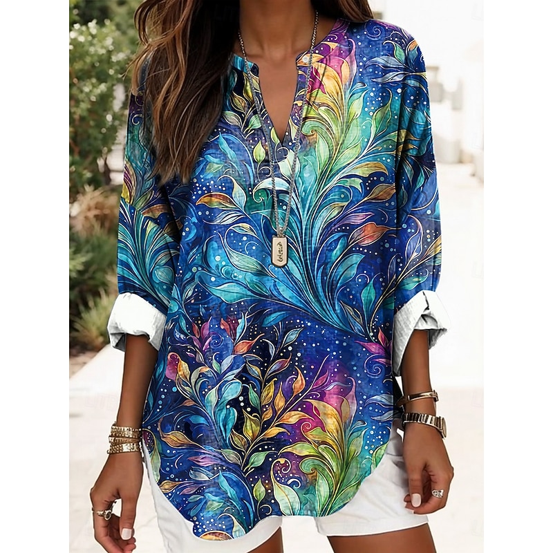 trending ! Women's Blouse Tunic V Neck Long Sleeve Boho Casual Tops Summer Tops Floral Graphic Vintage Tropical Regular Tops Daily Wear Print Navy Blue Blue Purple Green Beige
