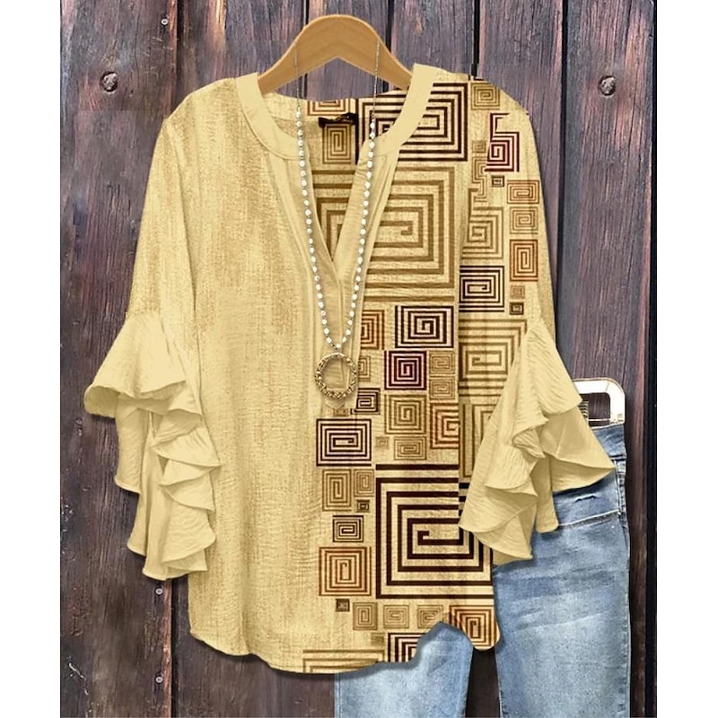 Why Choose Women's Blouse V Neck Graphic Geometric Bohemia Vintage Daily 3/4 Length Sleeve Regular Tops Daily Holiday Vacation Wear Print Black White Yellow Green Khaki Summer Spring Fall?