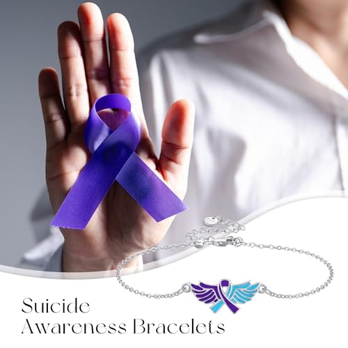 trending ! Suicide Awareness Bracelet S925 Sterling Silver Suicide Prevention Bracelets Mental Health Bracelet Teal and Purple Bracelets for Women Men