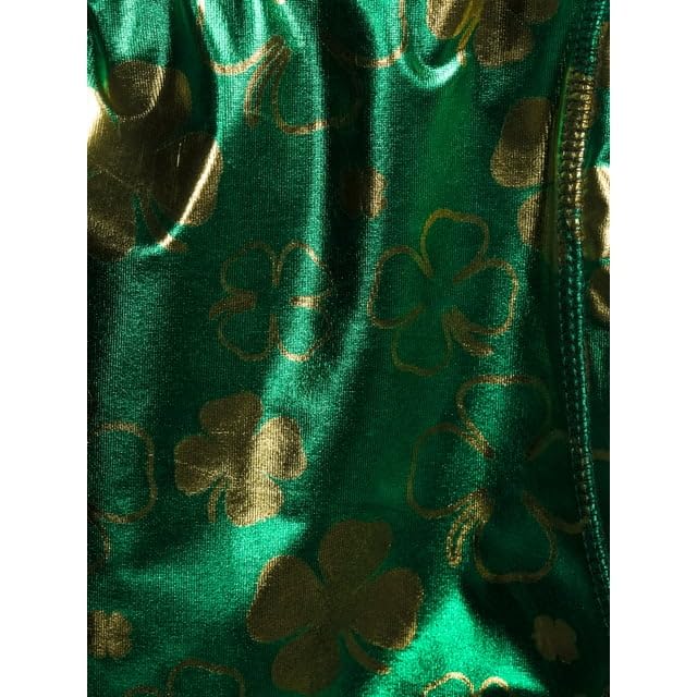 - Featuring an elastic waistband with "Paddy in the USA" lettering and an each-over four leaf clover print