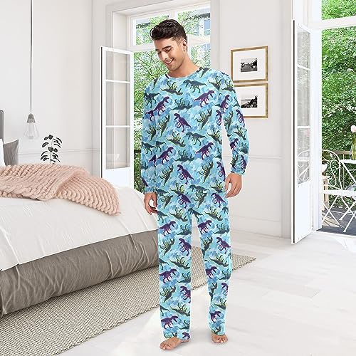 Unisex Pajama Set Dinosaur and Tie Dye Family Matching Long Sleeve 2 Piece Sleep Lounge Set for Men & Women 2