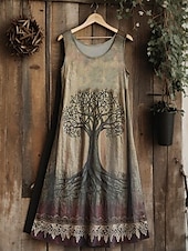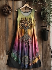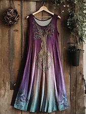 More information about Women's Vintage Viking Celtic Knot Gradient Art Midi Dress Sundress A Line Dress Vacation Casual Boho Going out Regular Fit Floral Graphic Leaf Sleeveless U Neck