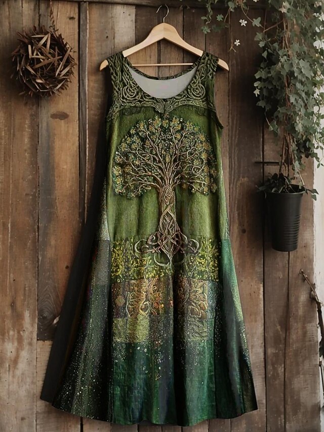Women's Vintage Viking Celtic Knot  Gradient Art Midi Dress Sundress A Line Dress Vacation Casual Boho  Going out Regular Fit Floral Graphic Leaf Sleeveless U Neck 9