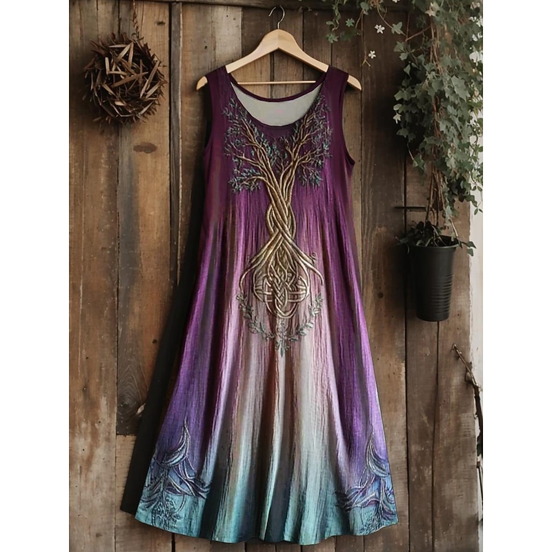 trending ! Women's Vintage Viking Celtic Knot Gradient Art Midi Dress Sundress A Line Dress Vacation Casual Boho Going out Regular Fit Floral Graphic Leaf Sleeveless U Neck